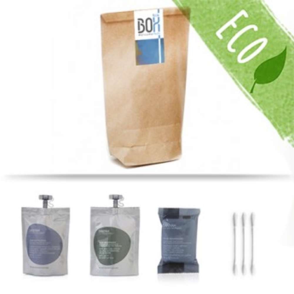 Le Kit de Bain Segre ANYAH (certifié ECOLABEL) est conçu pour répondre aux besoins des hôtels soucieux de leur impact environnemental. Il offre une expérience de qualité à vos clients. Ce kit de base est présenté dans un sachet en papier kraft scellé. Son adhésif au design générique Little BOX allie praticité et élégance.