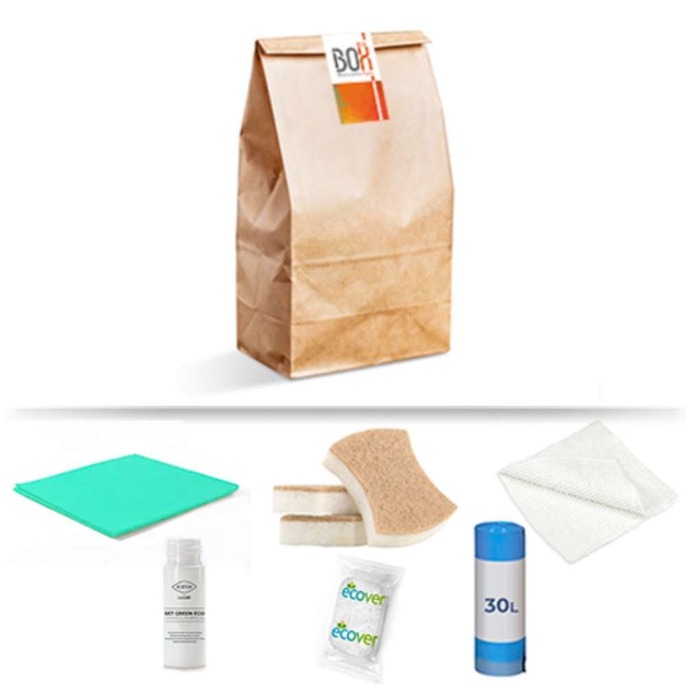 Ce kit de nettoyage est présenté dans un sac en papier kraft et a la composition suivante :n