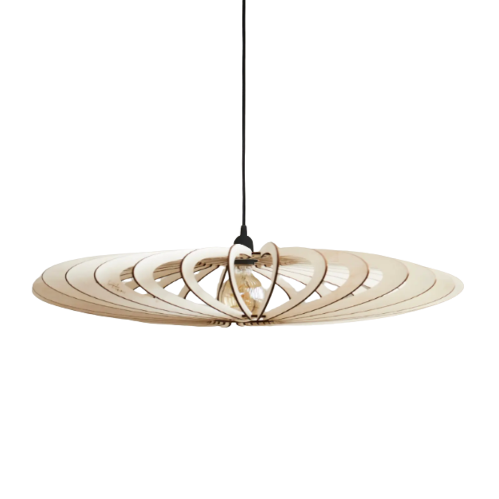 Ses courbes en bois FSC sculptent la lumière et créent un jeu d’ombres raffiné pour une ambiance chaleureuse et naturelle.